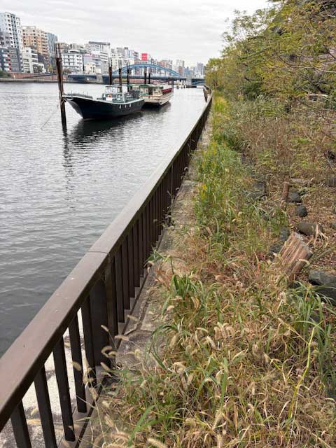 川に沿った管理道路わきに側溝ならぬ小川を再現している。久しぶりに見たら水はなかったけど雨が降れば溜まるよな。。。
