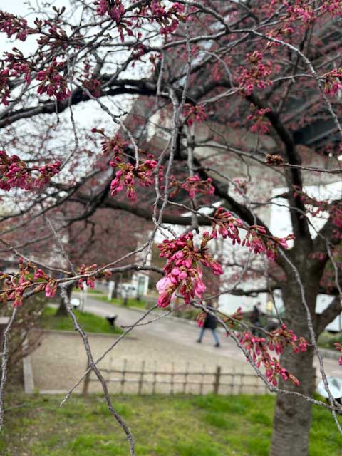 投稿日: 2026年3月13日 投稿者: tonchan浅草のそら 川べりは寒いと見える。よく日の当たるはずのここでも真っ赤に熟した果物のようなのに花弁が開いているのはごく僅か。それでも開いている方かな。